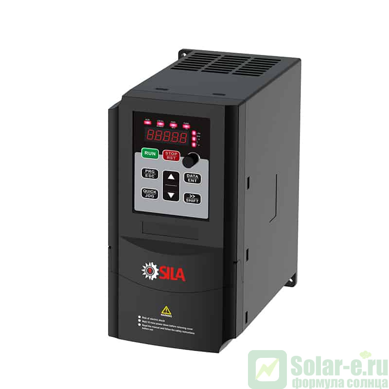 Трехфазный частотный преобразователь SILA A3.7G-T4 управляет частотой оборотов электродвигателя мощностью 3.7 кВт.