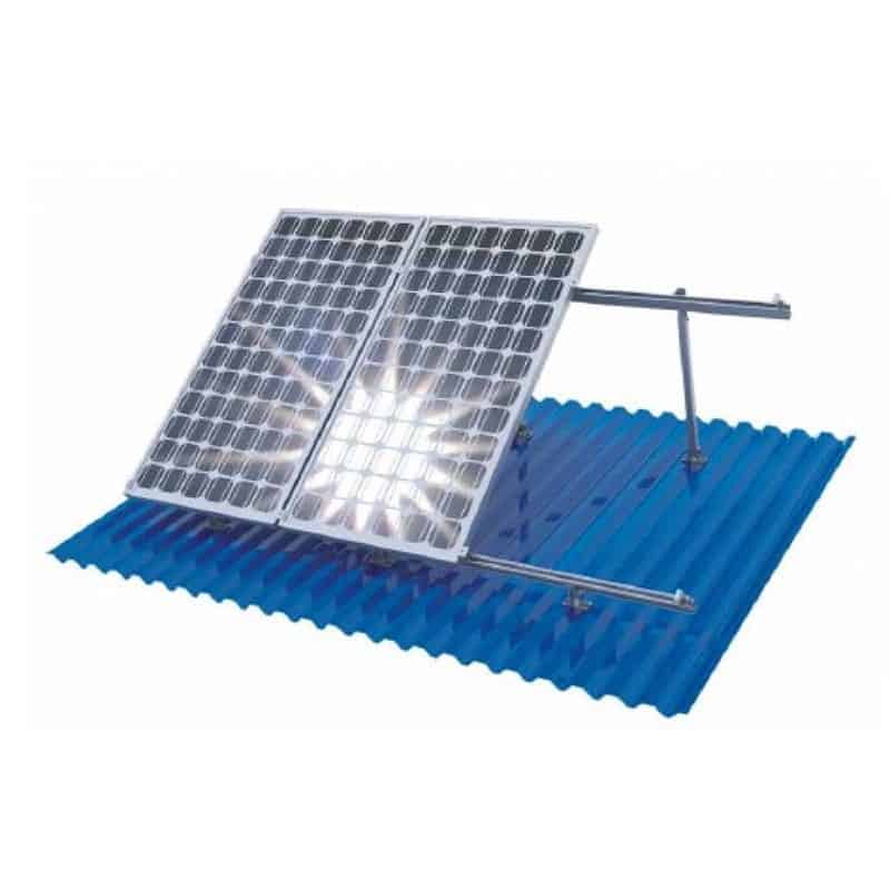 Данный комплект предназначен для монтажа солнечных батарей на плоской или наклонной поверхности (земле, крыше из мягкой черепицы либо металлочерепицы) в один ряд. Регулируемый угол наклона ( от 30 до 360 градусов ), позволяет эффективней использовать батареи, за счет изменения площади воздействия прямых солнечных лучей.