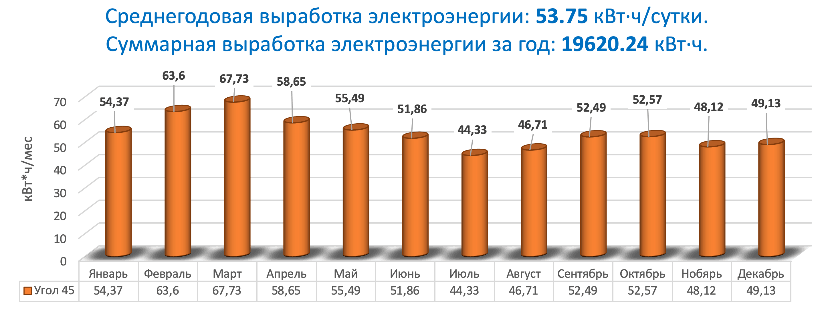 - Выработка согласно статистическим данным - до 63 кВт*ч/сутки