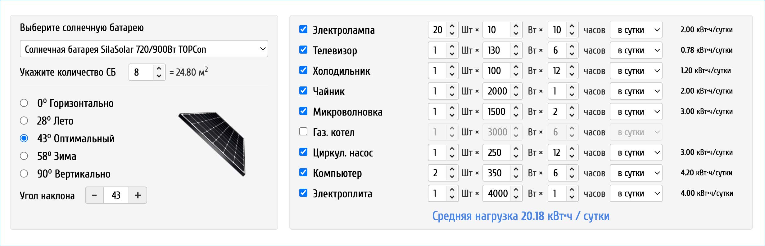 Расчет солнечной электростанции